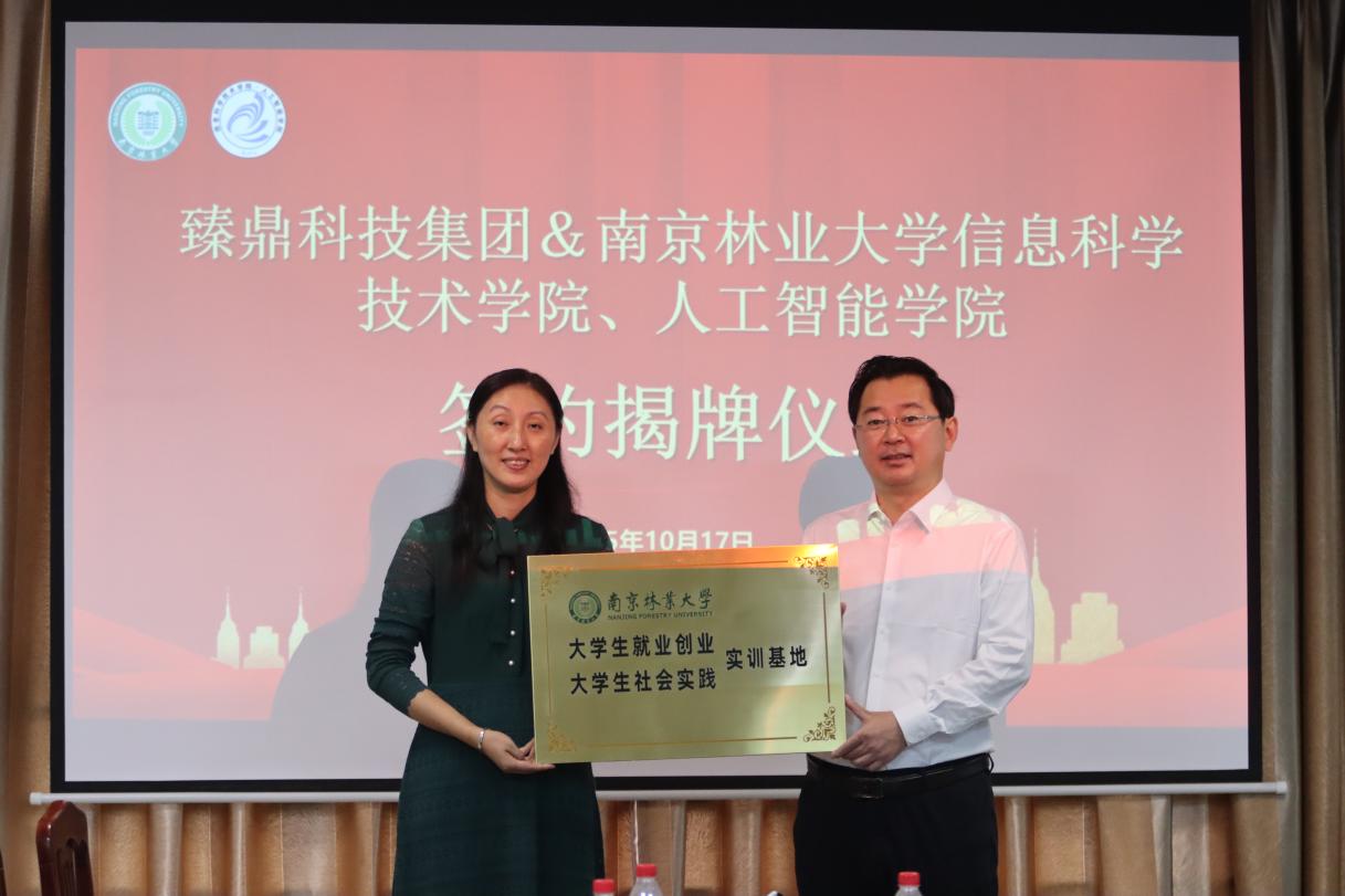 杨书记指出,此次合作是学院深化产教融合、推动人才培养与产业需求精准对接的重要举措,对学院深化校地合作、校企合作具有重要意义。在与会人员共同见证下,双方签署"南京林业大学信息科学技术学院、人工智能学院-庆鼎精密电子(淮安)有限公司校企合作战略框架协议"、"大学生就业创业与实践实训基地"合作协议,举行揭牌仪式。