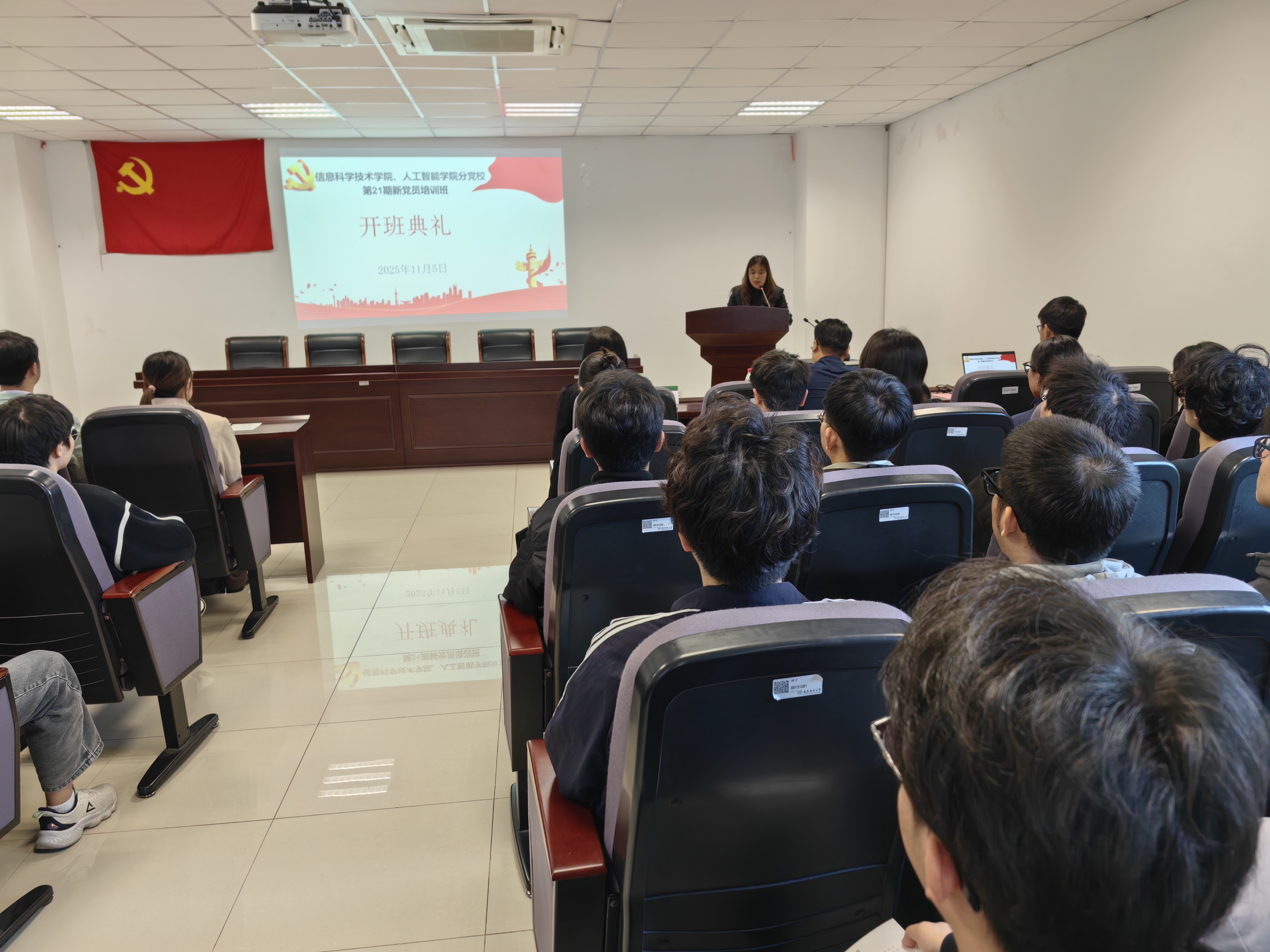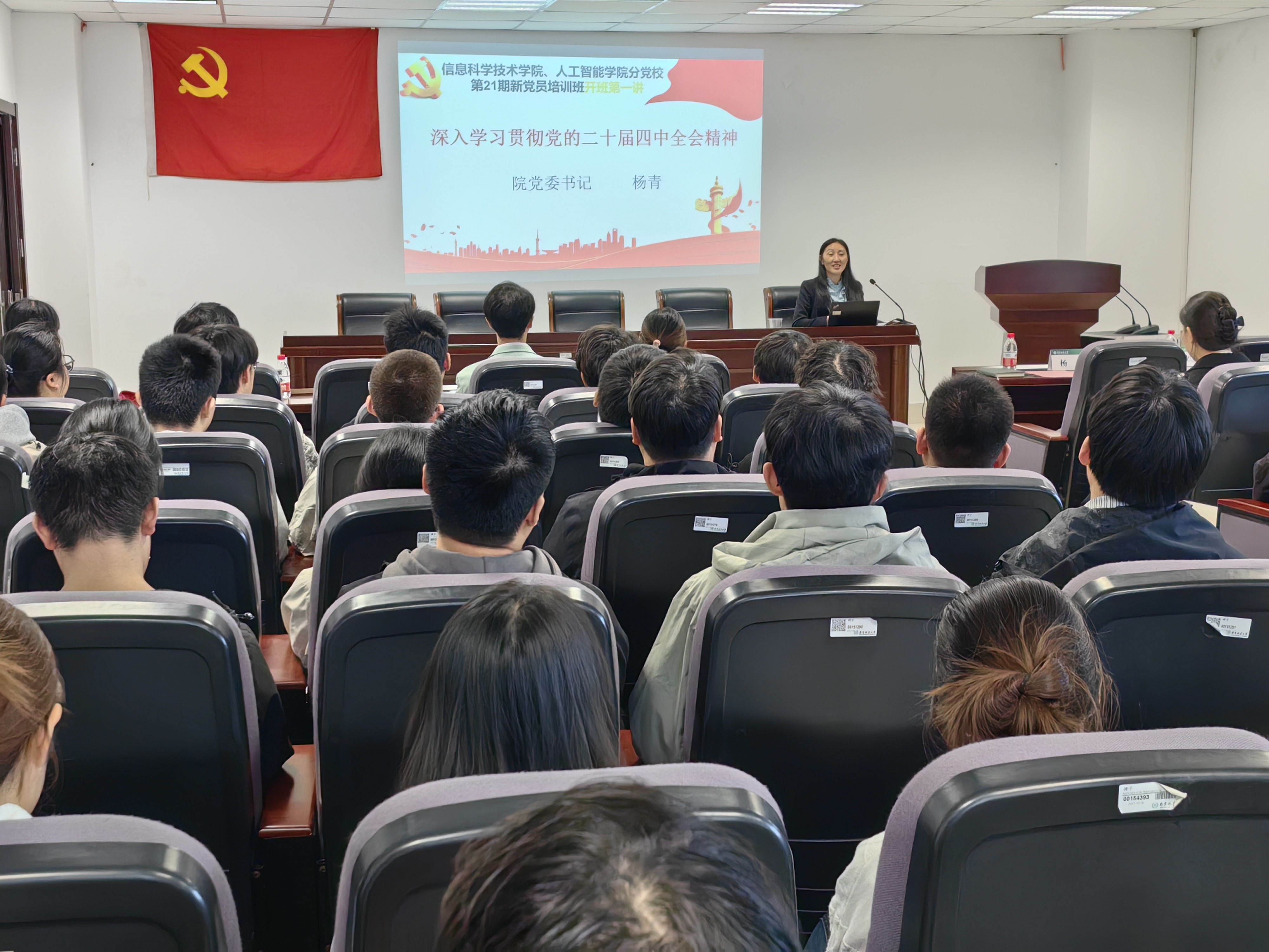为扎实做好新党员培训教育工作,提升预备党员的党性修养,帮助他们真正从思想上入党。11月5日下午,信息科学技术学院、人工智能学院分党校第21期新党员培训班开班典礼暨培训班第一次教学活动在信息楼10319报告厅如期举行,院党委书记杨青、院长业巧林、专职组织员韩自存出席开班典礼,培训班全体学员参加,开班典礼由兼职组织员2024级辅导员刘东阳主持。