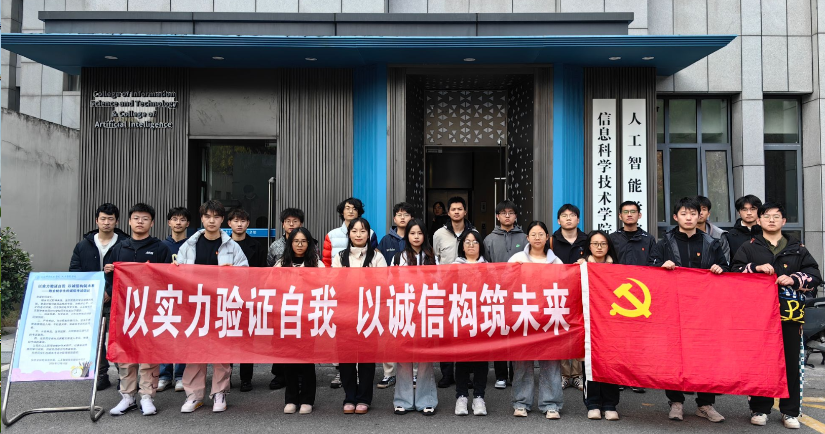 期末考试周来临之际,为严肃考风考纪,加强学风建设,弘扬诚信品德,营造公平、公正、健康的考试氛围,12月10日,信息学院电信党支部联合人工智能党支部发起了以“以实力验证自我,以诚信构筑未来”为主题的诚信考试倡议活动。活动旨在引导广大学生党员及全体同学端正学习态度,恪守学术道德,以真实学识和严谨态度迎接期末考试。