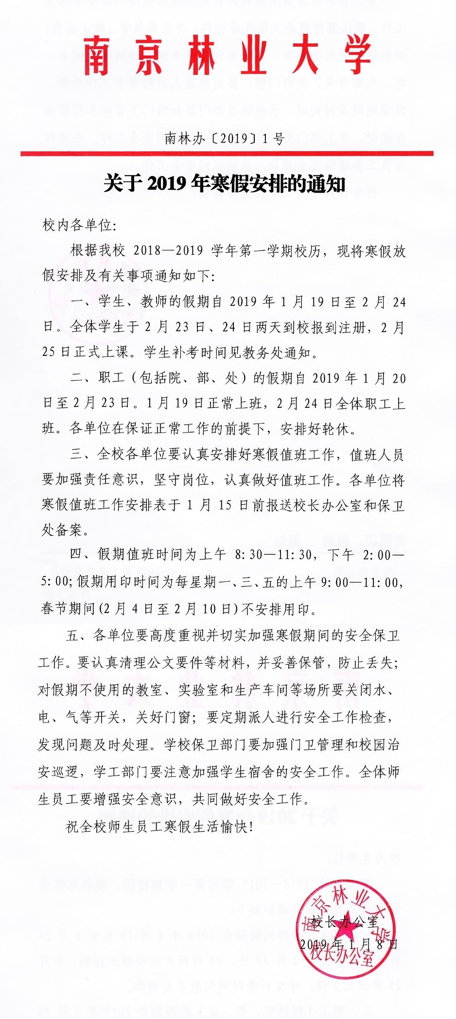 关于2019年寒假安排的通知
