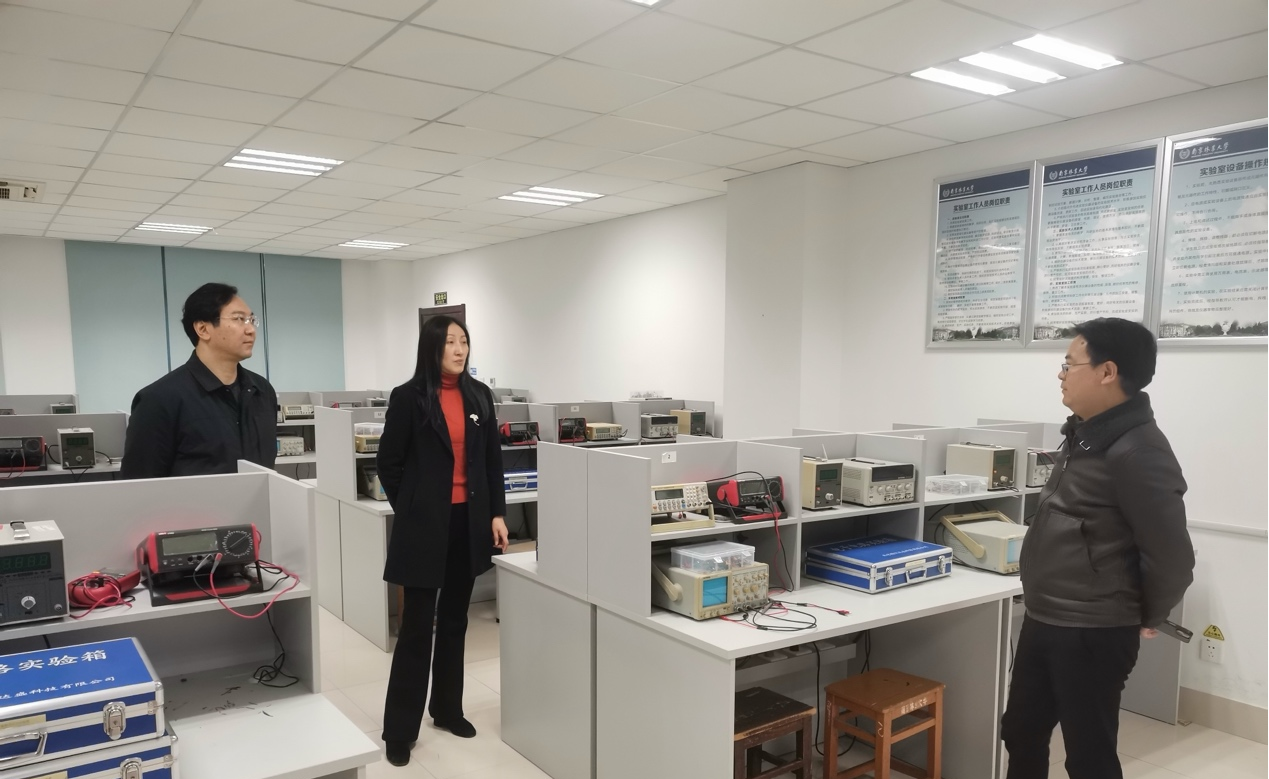 为深入贯彻落实学校寒假安全稳定工作精神,切实保障假期实验室运行安全,1月17日上午,院党委书记杨青、院长业巧林带领副院长林海峰,电工电子实验中心主任徐锋,计算机中心主任徐风,对学院所属教学、科研实验室开展寒假前安全专项检查。